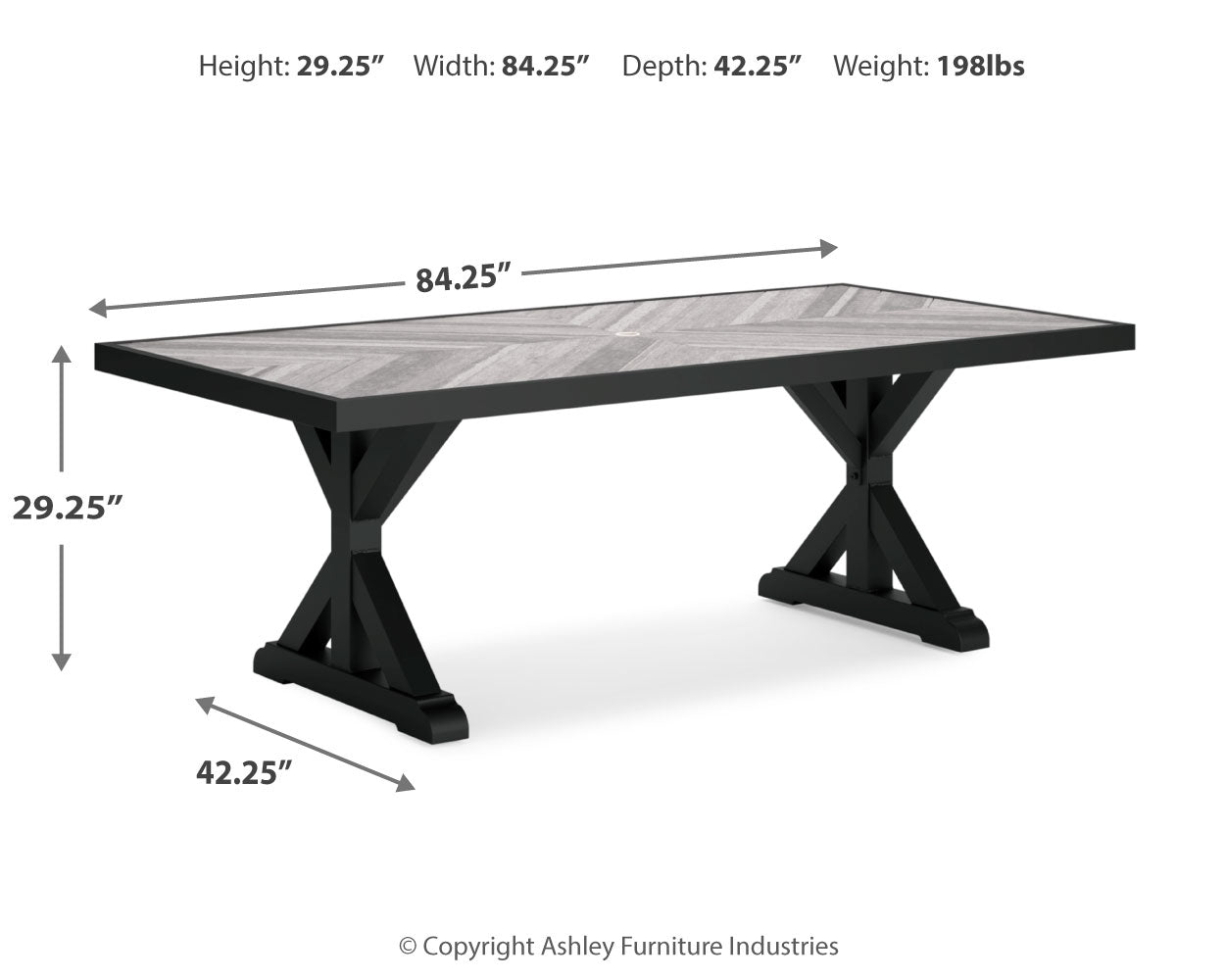 | RECT Dining Table w/UMB OPT | 84" | 42" | 29" |