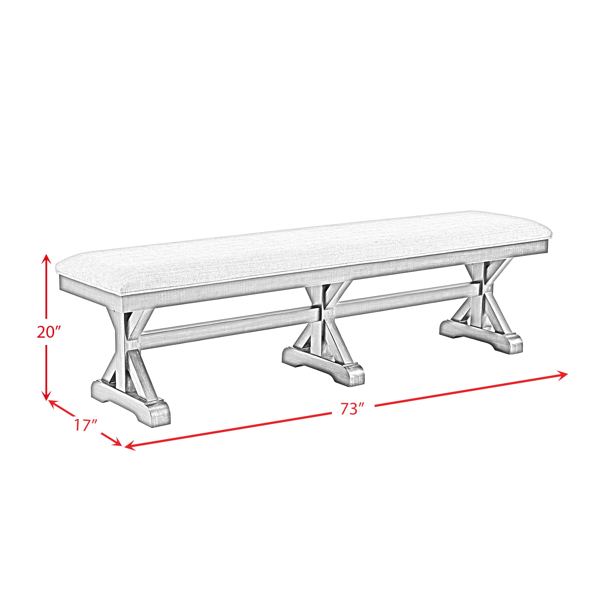 | Montrose Dining Bench with Light Grey Fabric in Espresso | 73" | 17" | 20" |
