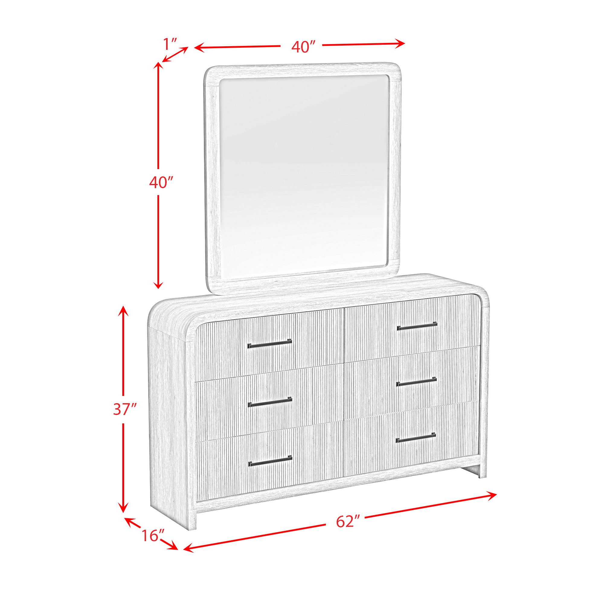 | Ridgemont Dresser and Mirror Set in Natural | 62" | 16" | 77" |