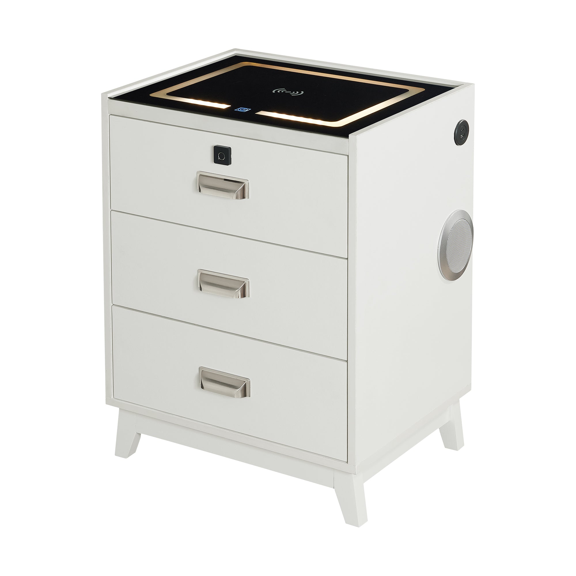 | Rio Nightstand with Electronic Features in White | 20" | 16" | 26" |